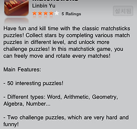 Matchsticks 썸네일형 리스트형 Matchsticks http://itunes.apple.com/us/app/matchsticks/id382918866?mt=8 Matchsticks iPhone 에서 작성된 글입니다. 더보기 이전 1 다음